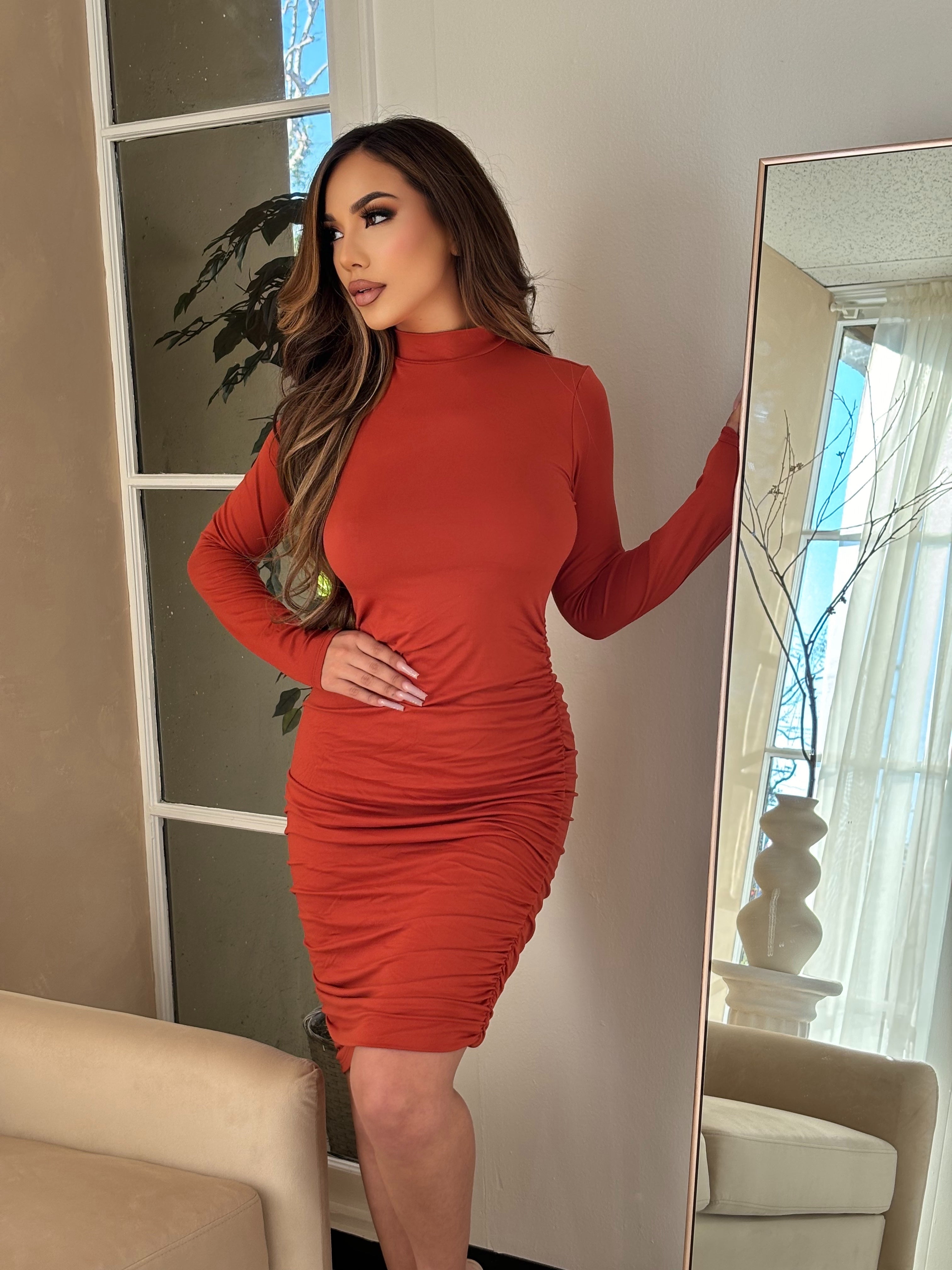 This dress boasts a sleek, comfortable design that fits true to size. It's perfect for any occasion and has been a top-seller among our customers. The model in the picture is wearing a size small for reference.